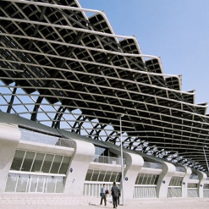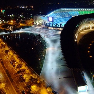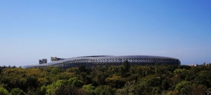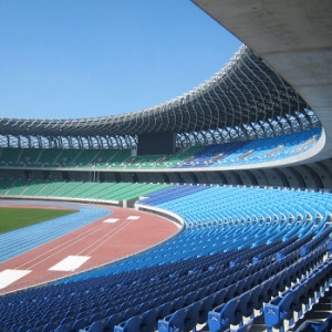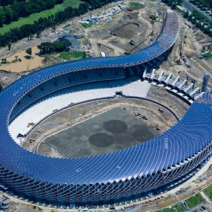 世界运动会体育场”位于台湾高雄,今年7月召开过世界运动会。有55,000个观众席,造价为1.5亿美元。体育场由日本建筑师伊东丰雄设计,屋顶由8844太阳能电池板组成,体育场有14155平方米的光电池屋顶,是世界最大的太阳能供电体育场。它可能产生1.14千兆瓦/小时的电力,可以给周围80%附近居民区提供电力。