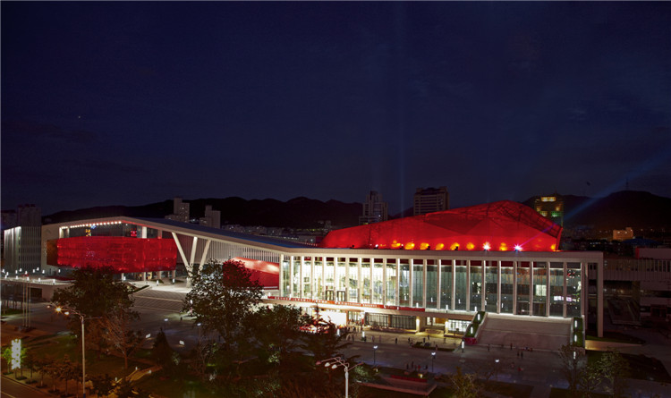 交汇之海、文化之石——将博物馆、大剧院、青少年宫的建筑体量用红色穿孔板包裹,分别意蕴历史之石、现代之石和未来之石。洗练简洁而寓意深刻的形体下包含了丰富、多层次的内外部空间,形成山海仙境、开放烟台和交汇之海、文化之石的设计意向。