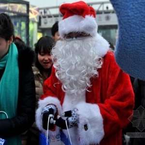 平安夜北京PM2.5爆表 “圣诞老人”戴口罩派礼物