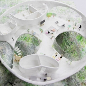 在智利海边的隐秘位置,junya ishigami为艺术收藏家建立一个私人住宅。一层圆盘形的住所是定位在两个岩层之上,高于周围的土地,提供独特的视野。外部的曲线线条延伸到房间内部,构成一种雕塑模式。表示通过圆形的墙壁,把内部区域。地板上有几个大型圆形孔洞,在不同的角度创造了不同光照条件,反映了崎岖的地形,使内部的照明不断变化。