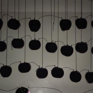 Charland别具匠心地用苹果、镀锌钉、铜线搭建了一盏“苹果树灯”,通过长时间曝光拍摄的照片证明了可持续能源的潜力。 |