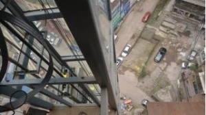 四川达州“土豪楼” 2013年12月20日,四川达川区梧桐梁社区长寿街小区的一幢老式居民楼有12层,楼层不矮但是没电梯。楼里的老人们每天接送孩子上下学、买菜,爬楼梯很不方便。邻居们凑钱在居民楼外装一部观光电梯。目前,电梯整个框架已搭建完毕。 |