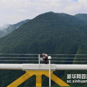 摘要:沪渝高速公路四渡河特大桥位于湖北省恩施土家族苗族自治州巴东县。这座特大桥横跨高山深谷,大桥塔顶至峡谷谷底高差达650米,桥面距谷底560米,大桥塔顶至桥面90米。为保证大桥安全及相关设备的稳定运行,两名90后养护工寒来暑往,两人穿梭在狭窄的“猫道”。