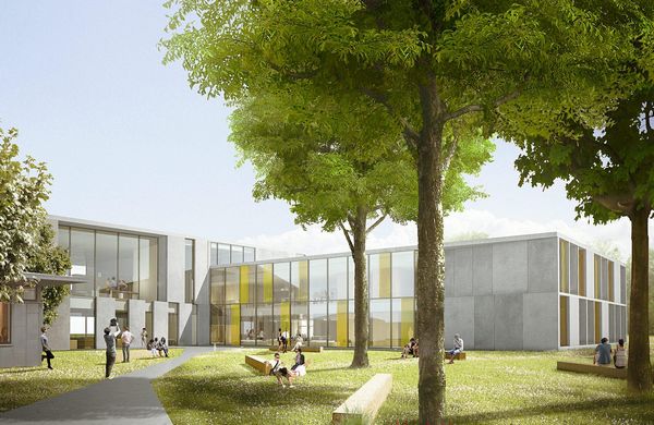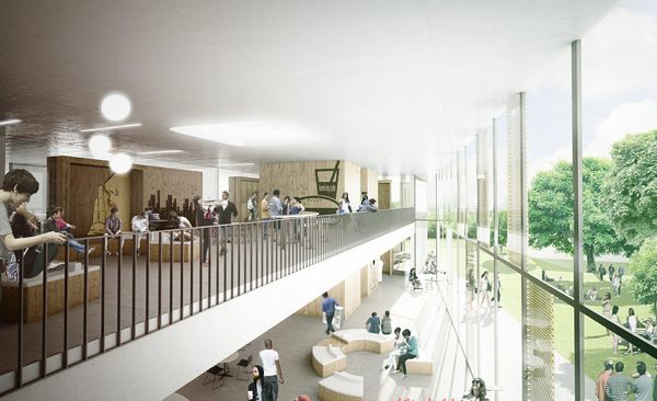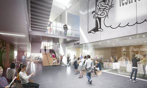 该项目是由C.F. Moller设计的,Herningsholm职业学校位于丹麦海宁市。新建筑包括三个有角的建筑体,聚集在一个倾斜的屋顶,这响应了其在学校其它建筑之间的关系。