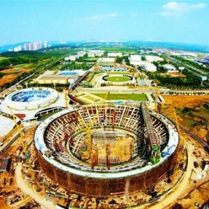 光谷国际网球中心15000座主场馆昨日封顶 光谷国际网球中心作为武汉国际网球公开赛赛事场馆,位于武黄高速公路以北,三环线东侧,省奥体中心以西。整个中心包括三座新建场馆,5层15000座主场馆、3层的5000座网球场、5000座综合馆,以及一座改建的省奥体中心3000座网球场。 现场看到,刚封顶的15000座主场馆正以“旋风皇冠”的姿态绽放。外形既似飞速旋转的网球,又如耀眼生辉的桂冠。在附近复绿山体的衬托下,显得亮眼且动感十足。场馆平面呈圆形,观众席沿比赛场地环形布置,从上空俯瞰,如一只巨碗。 光谷建设相关负责人介绍,该馆于2013年底正式动工,52402平方米,是国内规模最大的开闭顶网球馆。主场馆为钢骨混凝土结构,其上部钢结构为大跨度异型空间结构,场馆体量大、结构特殊、交叉作业繁多、施工难度极大。 由于施工仍在进行,无法近距离观察场馆,其独特的“镜面”立柱难窥全貌。据介绍,场馆的一层柱露面设计要求达到清水混凝土效果,即以最新工艺浇筑而成的“清水柱”表面平整光滑如大理石,近看可透出人影。 目前,现场已开始进行屋面网架施工,后续将陆续开展活动屋盖、气旋造型、幕墙及预制看台板的安装工作。同时,配套楼将进行基础梁钢筋绑扎。场馆预计2015年8月全部完工。 据了解,光谷国际网球中心主场馆不仅能用作武汉网球公开赛比赛场地,同时还能兼顾综合性场馆群体活动、会展、商业演艺等多方面专业服务职能,可满足大众健身、文化旅游、休闲娱乐、教育训练等多元化使用需要。建成后,将成为武汉市体育文化事业发展的地标建筑和新的城市名片。 主场馆设计处处“旋风” 虽无缘本届武网赛事,但15000座旋风球场的封顶,无疑为即将到来的赛事增添了一股浓郁的“旋风”元素。 15000座主场馆由中信建筑设计研究总院有限公司设计,定位国内规模最大的开闭顶网球馆。设计灵感来源于正在旋转运动中的网球,力图营造出一种飞旋、向上的感觉。 据介绍,网球馆外墙由多层次幕墙系统构成。几十根倾斜旋转的立柱既形成“旋风”的造型,又充当外幕墙结构的主支架。建筑入口呈弧线形开放,将平台的静与建筑的动完美结合。下沉庭院绿化区内设有旋风广场、旋转楼梯;甚至场馆的户外路灯,也会采用旋风的造型。 由于场馆设有活动屋盖,可以满足全天候使用要求。 |