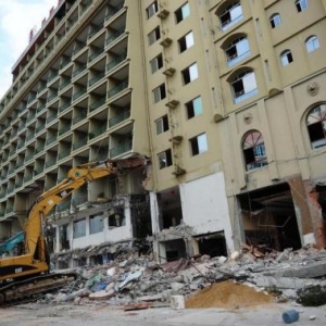 摘要: 摘要: 位于三亚市荔枝沟同心路的最大违建酒店昨天上午被彻底拆除。从该市吉阳区政府获悉,截至昨天,该区上半年共拆除各类违建773栋,44.91余万平方米。据介绍,被拆除违建类型多为本地人出地与外地人出资的联营建 ...
