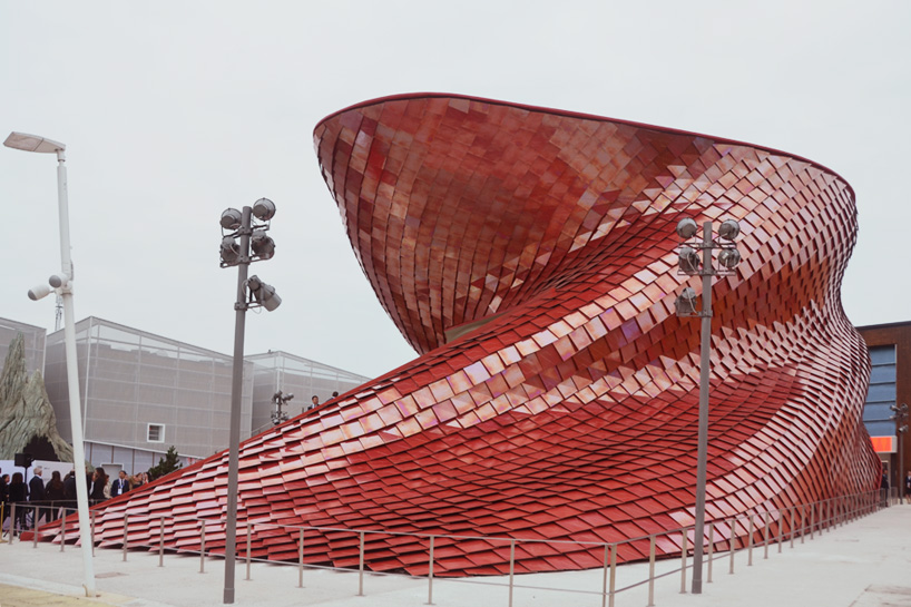 2015米兰世博会:丹尼尔里伯斯金完成了他的以龙为灵感的米兰世博会万科展馆,该展馆呈现出蜿蜒的身姿和鳞片状的红色、金色皮肤,犹如一条蜿蜒的龙。