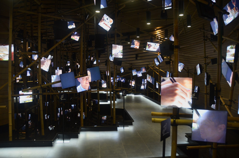 展馆内一层的展览由Ralph Appelbaum Associates设计。由大约200片竹帘构成,围绕着一个反光的水池。 二层有活动室和贵宾室,其中一些室内设计由里伯斯金亲自操刀,包括一座玻璃吊灯和一件架设装置。