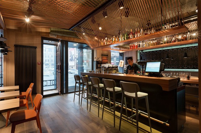YOD Dеsign Lab为这间280㎡的餐厅做了精心的室内设计,可以看出虽然视觉元素特别丰富,但却没有杂乱和缺少主次的感觉。反而处处都很有看头,材质、色彩、灯光、配饰的应用使得整体感很协调,气氛营造的很容易触动客人的食欲。