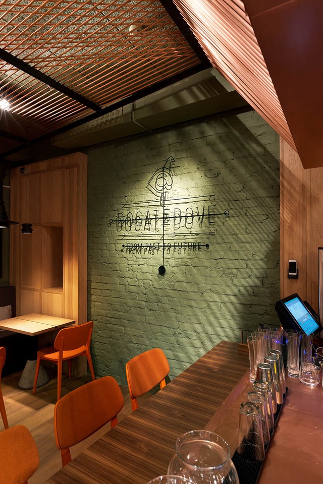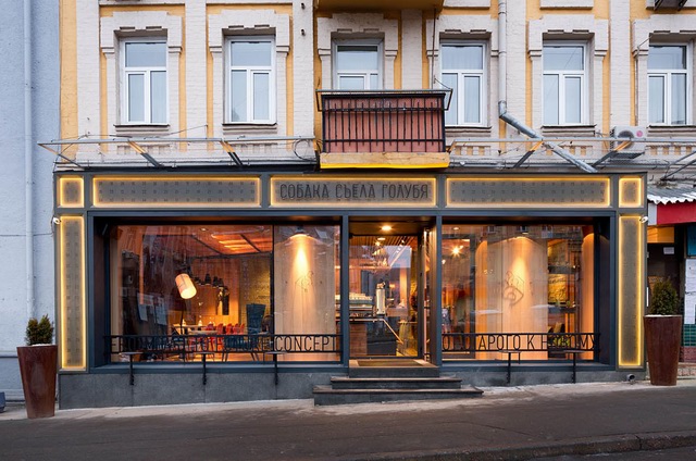 这是一家位于乌克兰(Ukraine)基辅(Kiev)贝萨勒布卡广场(Bessarabska )旁的餐厅,名字很有趣——Dog Ate Dove,硬生翻译的话名为“狗吃鸽子”……