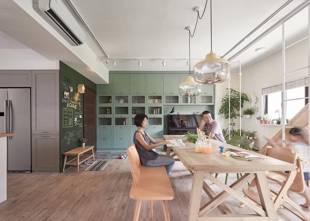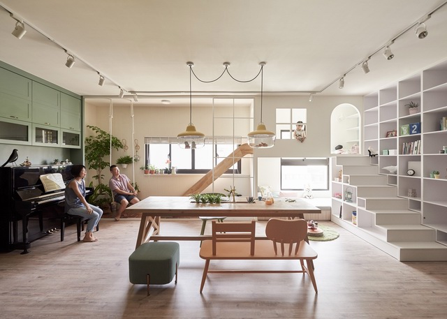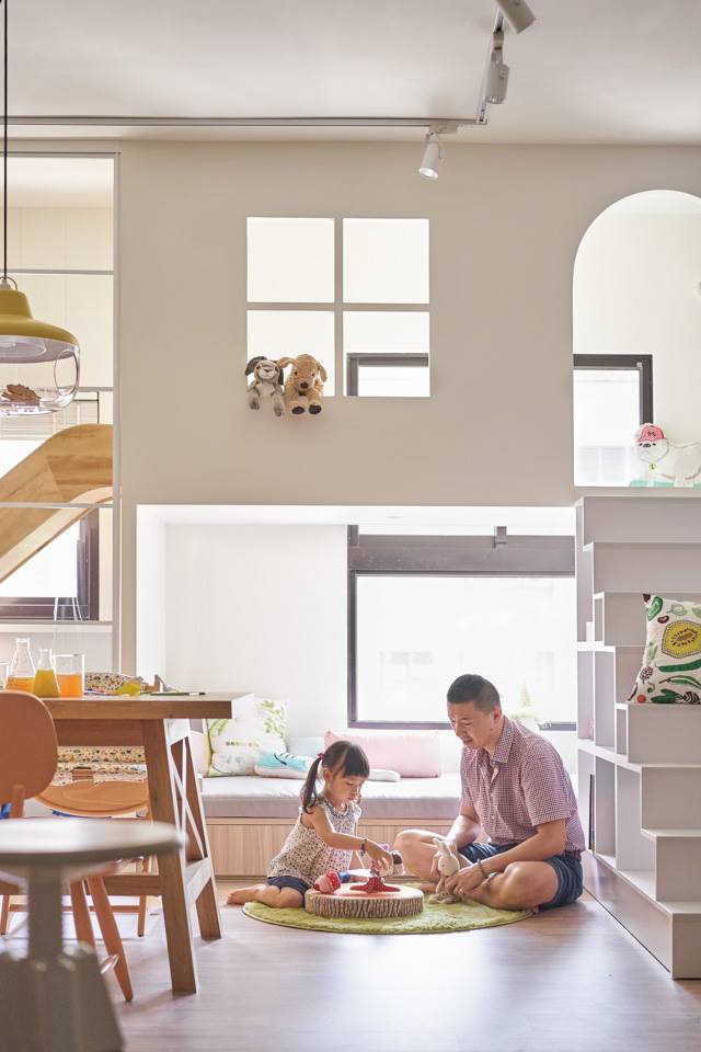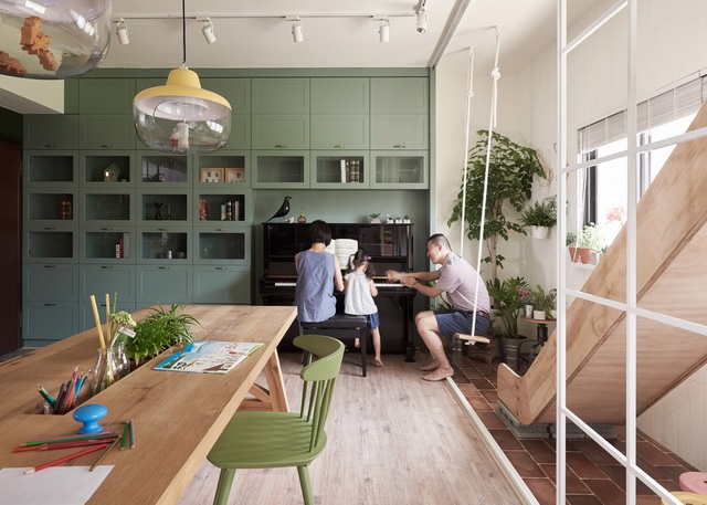 在家中设置滑梯与秋千的家居设计 adds wooden slide and swings to family home in Taiwan by HAO Design
