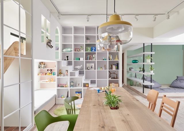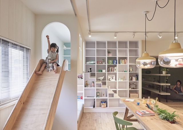 来自台湾的家居设计工作室HAO Design(好室设计)最近为一个四口之家设计了一个可以在室内滑滑梯,荡秋千的房间。是不是听上去很有趣,这样做的目的是让孩子与父母之间可以有更多的时间在一起,而不是父母抱着手机、孩子抱着ipad各玩各的~