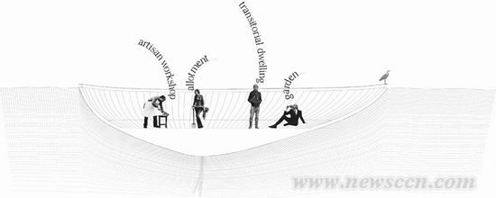 意大利bam!工作室赢得了2011年威尼斯城市愿景设计竞赛。他们的设计重新建立了威尼斯居民与其历史悠久的水道之间的联系,游客们可以乘坐游览小船徜徉在街道间的水系中。建筑师将威尼斯的水道重新引入到市民的日常生活中,河流两旁新建的露天房间也为这座城市的日常活动增添了新活力。