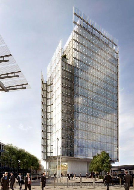 伦佐•皮亚诺设计的“玻璃碎片大厦”(Shard of Glass)高310米,是由Sellar地产集团开发的。近日,该集团公布了仍由皮亚诺设计的另外一座办公楼的方案,有17层,官方名称为“The Place”,但人们戏称之为“小碎片大厦”(Baby Shard)。 这是20亿英镑的伦敦桥区开发计划的一部分,将在2013年建成,比“碎片大厦”要晚一年。预计其造价为1.37亿英镑,面积为4.3万平方米。 “小碎片大厦”有一座冬季花园,并广泛地使用了自然光照,几乎半数以上的楼层能够有6米的日光照射区。 Sellar地产公司总裁Irvine Sellar表示,它将是伦敦最大和最高效的办公建筑,2013年投入市场时适逢A级办公楼空间短缺之际,预计会大受欢迎。 |