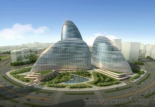“望京Soho”项目由扎哈-哈迪德建筑事务所(Zaha Hadid Architects)设计,由两座高度最高达200米的塔楼组成。这两座塔楼相互形成一定的角度。