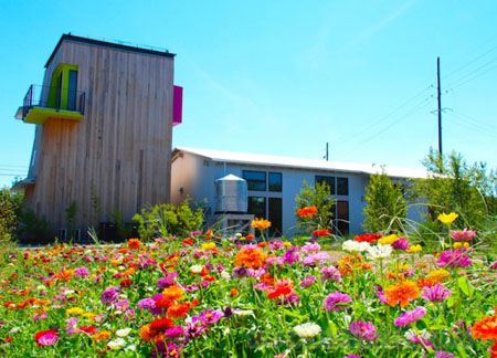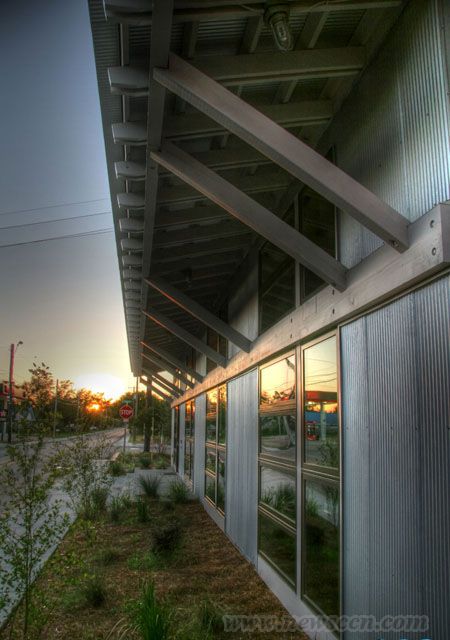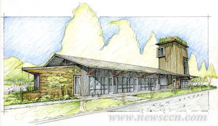 美国密西西比州的unabridged事务所是一家专门从事2005年卡特里娜飓风后重建工作的公司。最近,该公司在圣路易斯湾为自己设计了一座新的办公楼。 设计过程中要考虑到的因素包括:尽可能扩大三角形场地的利用率,较好地利用有限的预算资金以及实现LEED银级认证。 这块场地距离海边有一英里,原先的建筑是在1890年建造的,多年来曾经作为百货店、咖啡馆、加油站、剪草机修理店和家装商店等流传下来。在卡特里娜飓风前,老建筑已经年久失修,不过由于处在海岸山脊上的高点,并没有被洪水冲走。旧的木板和框架在新建筑中再次被利用。 由于它曾经是一处加油站,所以地下的储油罐被搬出后这里仍是一块棕地,土壤必须经过替换,并种植了修复土壤能力较好的植物,包括葵花、浮萍、羊茅以及粉色车轴草等。此外,雨水收集器、自行车停放处、开放空间和密集的当地植被都是获得LEED认证的加分点。 初步设计时建筑采用了钢框架,这样可以利用原建筑的材料,但是由于预算有限,只能改用当地出产的木料。密西西比州盛产松木,因而黄色的松木板用来当框架,柏树板则作为雨幕系统的包面。办公楼部分以垂直的柏树板雨幕来装点,平房部分的办公室则用褶皱的金属板装饰,因而两部分的区别很明显,也为将来搭建第三座建筑打下了选择的余地。 平房部分有一块三角形的角落,种植了花草,将色彩引入到城市街景当中。木质的角落延伸到室内,形成功能区:接待区、厨房、复印室和卫生间等。色彩突出了入口和塔楼的阳台,窗户则凸显在第三层上。内部空间白天不需要人工照明,大块的玻璃窗安装了遮阳板,挡住了直射的光线和热量。 办公室内的工作台是开放式的,安装了书架和电脑桌,可放置个人的物品和文件等。会议室和走廊之间用回收的材料搭建了一座屏风。 |