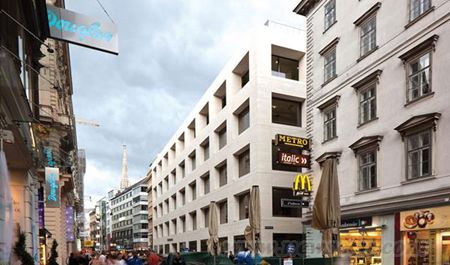 Chipperfield事务所的德国办事处负责这一项目的设计,并表示其设计概念建立在"有窗户的房屋"这一思想上,看上去很像是19世纪风格的百货商店。百货商店的立面采用浅色的多瑙河产的石灰石。这种材质让它在周围用石膏板搭建立面的建筑中独树一帜。
