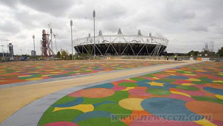 伦敦奥林匹克公园内的步行桥开始装饰