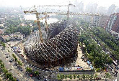 由北京建筑设计研究院设计的北京“克菲尼斯国际媒体中心”的建设工作正在进行。这个项目是一种钢铁框架结构。