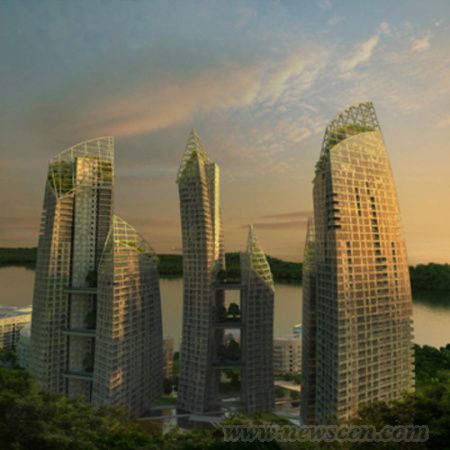 这个90万平方英尺的工程由3座24层的大厦和3座41层的大厦组成,相互之间以9座景观天桥连接。利贝斯金德表示,新加坡是一个文化、自然和建成环境和谐统一的范式国家,因此该项目将彰显这种独特的美感。“映水苑”这一名称的来历是由于天空和水域能够反射出新加坡乃至亚洲更大的画面,同时也能够反射出新的想法和理念。