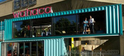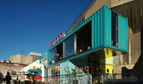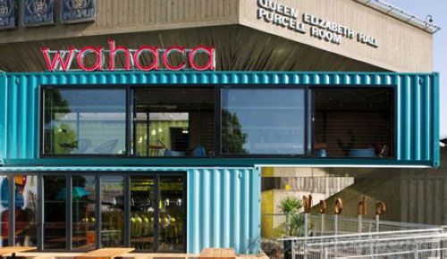 这座名为“Wahaca南岸实验餐馆”的项目是用8座回收的船只集装箱建造的,每一只集装箱都按照餐馆墨西哥主题的四种明亮色彩之一来粉刷。
