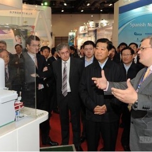 4月6日,中共中央政治局常委、全国政协主席贾庆林来到北京国家会议中心,参观正在这里举办的第十二届中国国际核工业展览会。