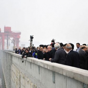 2月22日,巴基斯坦总统扎尔达里一行在三峡大坝坝顶参观。 |