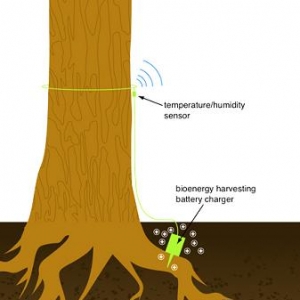 其电势是微弱的,但是,它持续维持该电势的能力意味着它能被可靠地用于连续地给电池或电容充电。这个电池或电容接下来可以被用于每天给一个无线电传感器节点供电四次,以发送数据。通过在安装于树木上的各个节点之间实现网状网,研究人员计划把传感器数据从一个节点传输至另一个节点,直至它抵达一个地区的气象站。该气象站然后把来自各个树的不同的传感器读数中继至中央火灾预测计算机。