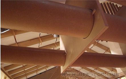 法国时尚品牌爱马仕(Hermes)在2011年米兰设计周上搭了一个纸屋,用来展出自己的产品。纸屋用三合板和厚纸筒来构建,然后由薄纸穿插来形成相对私密的空间,还是挺有味道的,由日本建筑师ban设计。