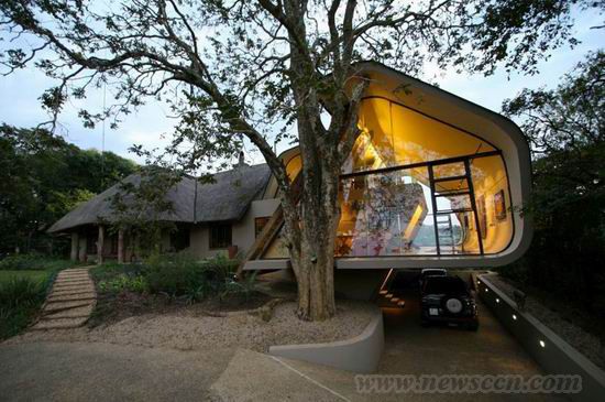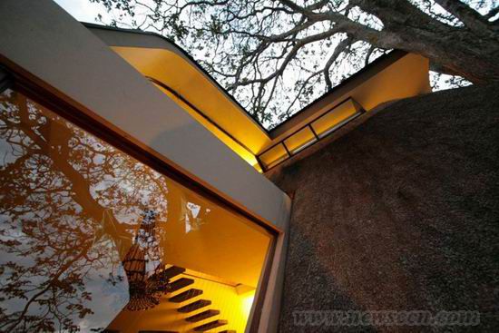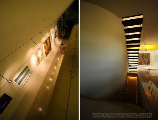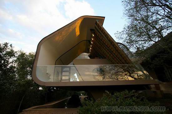 由南非建筑师elmo swart设计的'wright conversion'项目是一个位于南非德班的小村舍扩建方案。加上扩建的一间新卧室,这座住宅共有三间卧房,两间学习室,一间多功能娱乐室和一个小型画廊。整个建筑从上到下被卷曲的表皮包裹,创造出了流动的楼板、墙面和天花板形态。