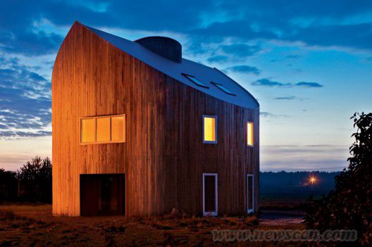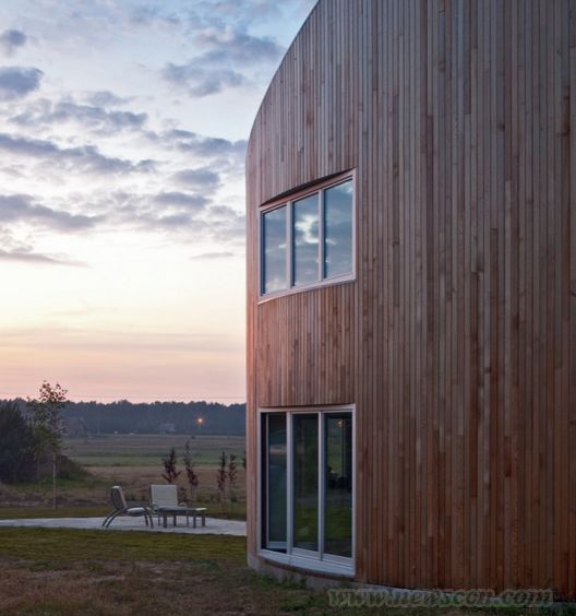 这个住宅位于波兰郊区,它呈现出一个圆形的形式,这种形状适合于任何形式的场地环境,屋顶的灵活形式也比较容易满足不同的景观条件,室内的布置也是充满多样性,以满足住户的所有要求。可持续是这个设计的重要元素,设计通过自然建造材料的运用,可回收能源的利用等很好地尊重了自然环境。预制的木质结构也节省了建造的耗费,同时保证了良好的质量。