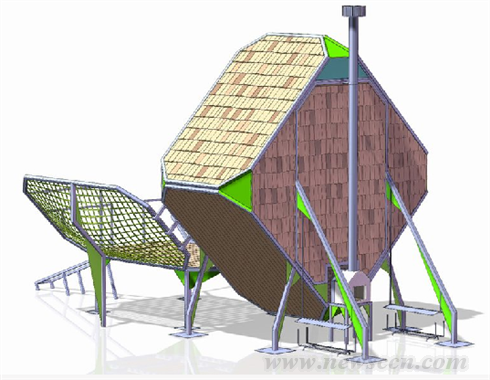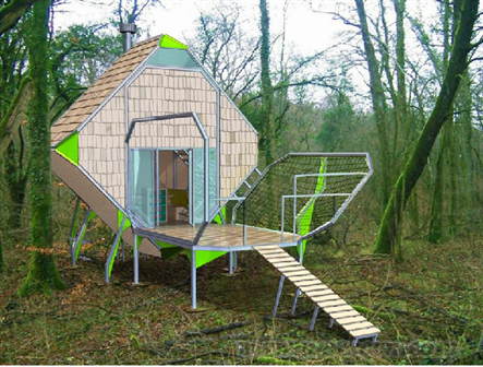 巴黎设计师matali crasset设计的森林旅店(les maisons sylvestres)是一个集合了四种生态学结构的建筑,项目坐落于 le vent des forêts。组织者由六位森林村民组成,他们作为这里的主人每年夏天接待来访的艺术家们已经有10年了。旅馆即将完成,每年五月到九月可以出租给旅客,最初的两所将在一个月内完工亮相。 设计首先考虑到可持续发展的观点。建筑物由槐木,松木和镀锌钢等材料建造,基础是活动的,这样可以放在森林中而不破坏自然环境和生态系统。建筑形式来自四种简单形体的变种-蛹,菌类,织锦,巢。这里可为短暂居住者提供基本但舒适的住所,设计把室内室外空间完全的交织在一起,让居住者深切的体会大自然的魅力!