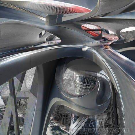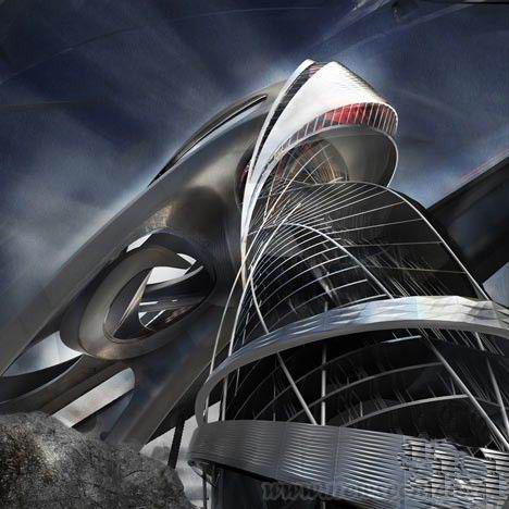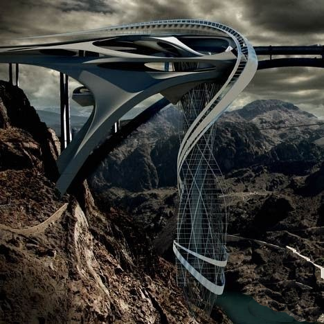 建筑学学生Stephan Sobl设计了一个悬挂于美国内华达(Nevada)科罗拉多河谷(Colorado River)的摩天楼。
