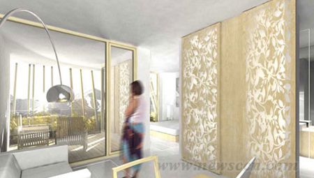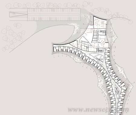 位于斯洛文尼亚布莱德(Bled)的Mivka饭店度假村是一个可以滑雪、登山、玩极限运动、远足等活动的旅游胜地。它坐落在一片森林当中,周围是美丽的自然景观。来到这里的游客除了景色看不到其他的东西,既看不到通向度假村的道路,也看不到其他客房。并且,充足的日然光照成为设计中的重要因素。 弯曲布局的饭店被分割为较小的部分,这样客人最多只能看到一到两个部分。这种凹形的设计保证了客人的私密,不会产生交叉的视线。 建筑本身采用了天然的材料,并随着时间的流逝来慢慢显示出岁月的痕迹。木质立面构成了树林与饭店的直接对话,垂直的木板遮挡了来自外面的视线,也成为保护内部空间,防止热量流失的一道屏障。 |