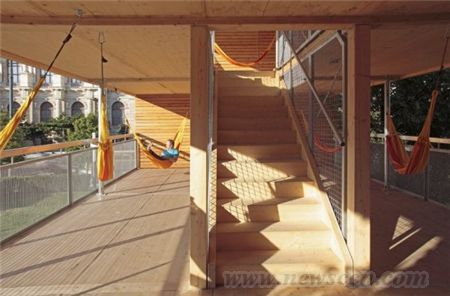 “蝙蝠洞”(Flederhaus)是由Heri & Salli设计,作为一个开放式空间为旅行者提供了一个临时的“家”,同时“蝙蝠洞”(Flederhaus)又可以作为一个休息与放松的城市绿洲,成为垂直公共领域的符号。