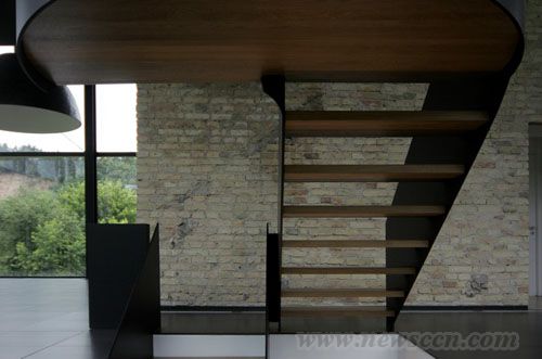 由于加盖的部分全由玻璃围成,所以在室内活动的时候,主人一家可以享受到 360 度、一望无际的自然景观。值得一说的是,屋内的家具和地砖均为深色,简约的设计与沧桑感十足的砖墙形成强烈对比。在这个新旧共存的空间里,起沟通作用的是那条如缎带般的黑色旋梯,将这栋古老的、充满故事的小屋与现代紧紧连结。 |