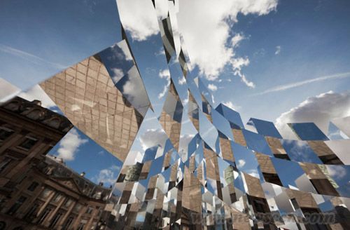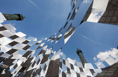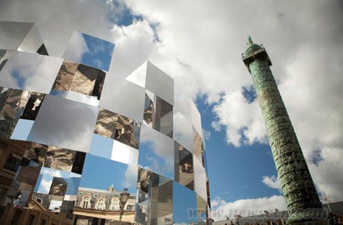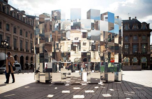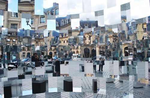 法国设计师arnaud lapierre最近创作完成了装置“环”,这件作品将一系列镜面立方体组合成一个环形,同时这件装置也是设计师与AUDI公司合作完成的。无数的反射镜面和尖角将周边静物都扭曲了。这种光学效果创造了一种超现实的环境,立方体镜面上的建筑物和人都被扭曲变形,重组并粉碎了人与广场之间的正常关联。“环”装置高5.5m,宽4m。 在2011年巴黎国际当代艺术博览会(FIAC)期间,装置作品“环”在巴黎vendôme广场展出。