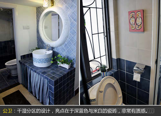 (3)公卫:干湿分区,方便客人使用,瓷砖的搭配很有质感,体现出优雅不俗的地中海风。