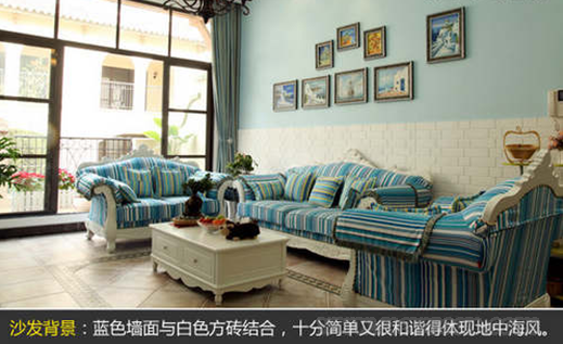 (2)沙发背景:条纹的沙发是女主人的大爱,特别小资的情怀,蓝白合一的背景瞬间提升和谐度。