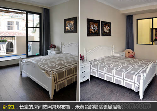(1)卧室1:长辈偶尔过来小住,韩式的家具米黄的色调显得十分斯文。 |
