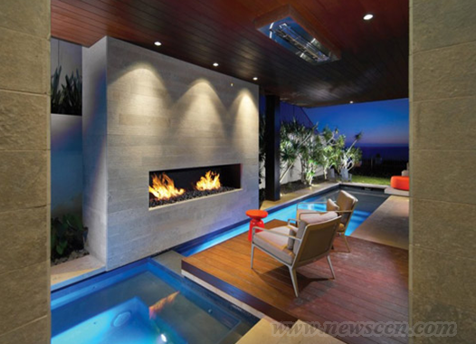 休闲水池、壁炉设计,功能与装饰同在