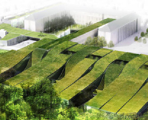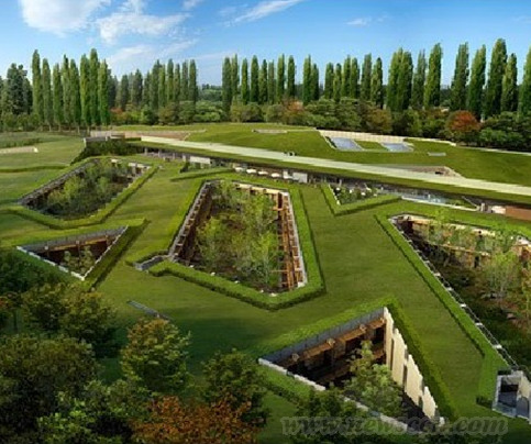 英国萨里赫斯哈姆高尔夫俱乐部的地下五星级酒店由ReardonSmith建筑师事务所设计,酒店内建有豪华温泉会所以及高尔夫设施。为了防止不必要的土地开发,英国建立了绿化带。通过栖身地下这种方式,这家五星级酒店满足了有关城市发展的限制条件。此外,这一设计也同样能够降低对交通流量的影响。由于地上建筑栖身于现有林地之内,附近当地居民的视野不会受到影响,可以尽情欣赏那不可触摸的自然景色。 10.北京创意区绿化带