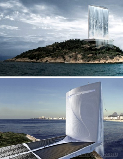 RAFAA建筑设计事务所为2016年巴西里约热内卢奥运会设计的“太阳能城市塔”可在白天利用太阳能发电,日落后再利用抽蓄水系统发电。它的最大亮点当属一个又大又高的瀑布,好像来自天空,给人一种超现实的感觉。发电塔将为奥运会提供大量电量,象征大自然力量的瀑布倾泻而下场面只在特定场合时出现。