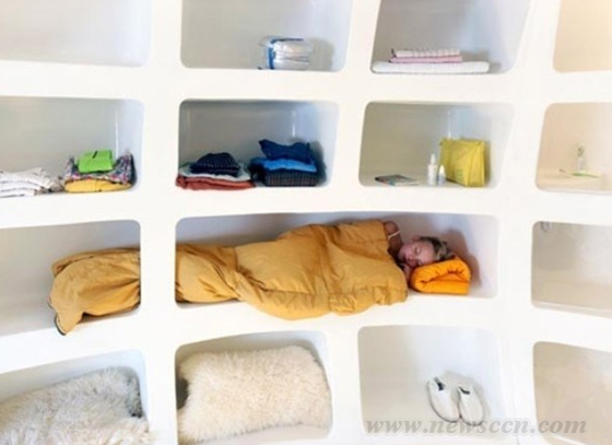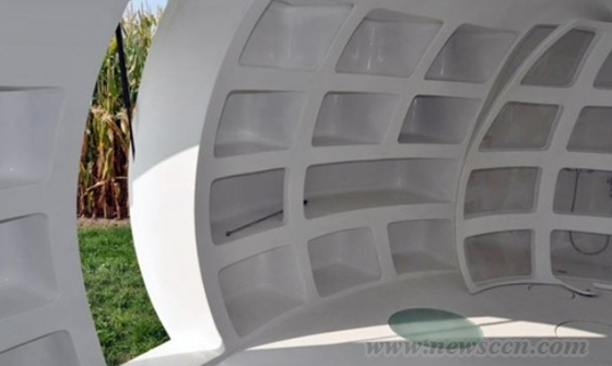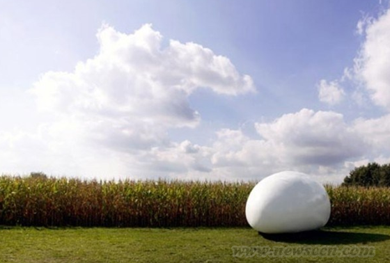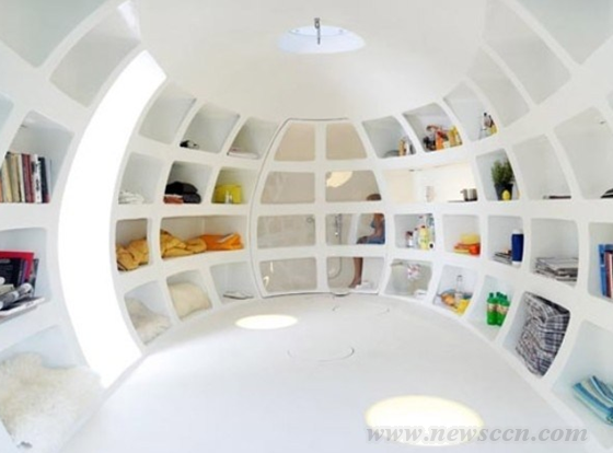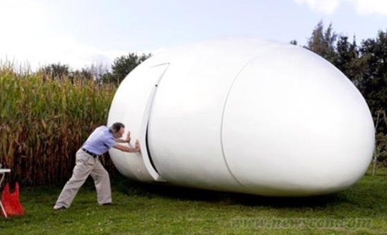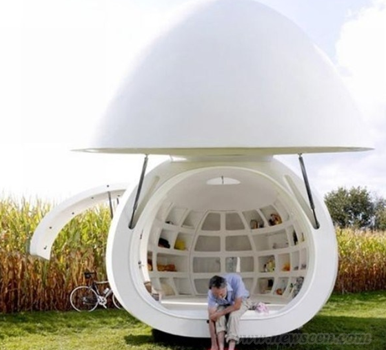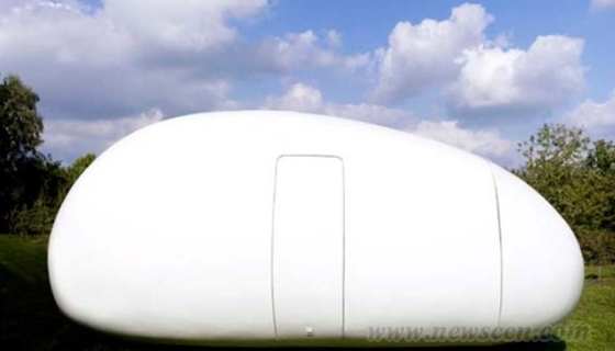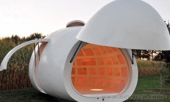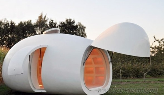 这是由比利时一家建筑公司设计建造的像水滴房子:Blob VB3,并且邀请当地的居民来体验这种配有浴室,厨房,灯光,一张床和格子架子的多功能的房屋。