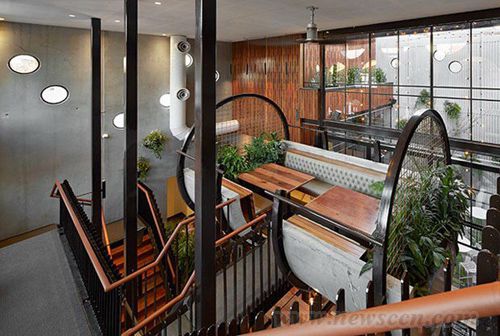 从建筑外部看过去这17根水泥管错落有致的排列在那里很是吸引人,内部的感觉同样很独特,水泥和木材的材质组合加上适当绿植的点缀为室内环境营造出一种很朴素又有那么点情调的感觉。来到墨尔本的游客们走到这里应该很容易就被它打动吧。