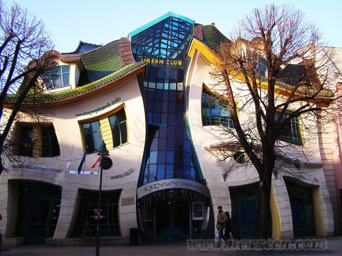 波兰的建筑在很多人的印象中是古老而单调的,但在波兰,有一座弯曲房子,当地人都为拥有这样一座堪称现代艺术品的建筑感到骄傲。 像普通房子前摆了一个哈哈镜 波兰北部波罗的海沿岸有个三联城,格但斯克、索波特和格丁尼亚三个城市从南到北排开并彼此相连。其中夹在中间的索波特是著名的海滨旅游胜地,每年吸引上百万来自波兰和世界各地的游客。弯曲房子的地址就在索波特市最重要的商业街蒙特卡西诺英雄街(1944年,由波兰战士组成的海外军团攻克了纳粹占领的意大利蒙特卡西诺,蒙特卡西诺战役是二战著名战役之一)。弯曲房子在这条街的53号,正好是街的中部。 从蒙特卡西诺英雄街上看弯曲房子就像是把一座普通的房子摆在了哈哈镜前面,房顶、墙壁、窗户都是扭曲的,当地人把它称为跳舞房或是醉汉房,站在这个“东倒西歪”的房子前,给人的感觉是重力原理在这里失去了作用。 弯曲房子共有3层和一个阁楼。一层有快餐店、咖啡厅和游戏厅;二层除了旅游纪念品店外,还有个带电动舞台的餐厅,在这里经常举行音乐会;三层和阁楼是办公室和一个开放式大画廊。 特殊材料制成 弯曲房子是2003年投入使用的,虽然外表看起来有些可笑,但建筑质量可是实打实的,弯曲房子达到了最高的A级建筑质量,它建成的当年就获得了商业中心建筑年度奖。 建造弯曲房子使用的是一种以火山岩为材料的空心建材,既隔冷又隔热,建房用的这种大块的新型建筑材料没有一块是规则的,这些材料块是在图纸设计完成后一块一块制成的,每块建筑材料的形状虽然不同,但厚度都是60厘米,最后由工人像搭积木一样把它们堆起来。 值得一提的是,与弯曲房子相临的建筑也都是三层的,而且弯曲房子每层的窗沿也都与相邻建筑的窗沿高度持平,弯曲房子的规模也和相邻建筑的大小基本相当,因此虽然弯曲房子是扭曲的,但并不太扎眼,与这条街上的相邻建筑形成特有的和谐。 弯曲房子内部的商业用途丝毫不受“扭曲空间”的影响,超现实主义的风格反倒使商铺因此更添了艺术色彩。 弯曲房子内部色彩艳丽,从入口的彩画玻璃,到暖绿色和海蓝色的天棚,房顶上做成鱼鳞状的护瓦也被刷成了绿色,整座建筑从里到外都是超现实主义的。 |