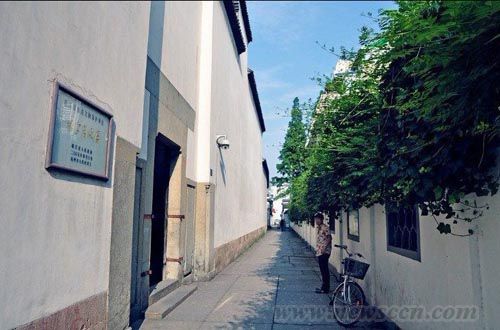 入口处的胡雪岩故居,高高的白色墙壁,防火也防盗。 |