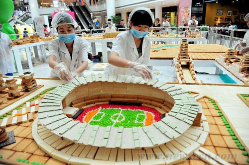 牛人无处不在,他们可以用饼搭成“沈阳故宫”,可以用硬币搭建“悬空”建筑,可以用各种各样的食物打造出伦敦等等。 沈阳建筑大学学生饼干搭“城”
