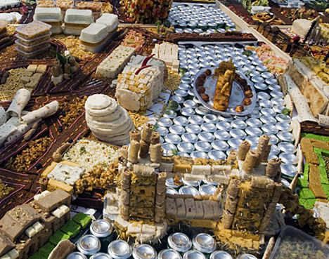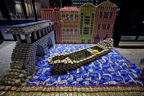 当你还是孩子时,你可能还记得在学校将罐头食品堆成摩登塔,但这远没有此罐头建筑那么令人印象深刻。加拿大多伦多大学的学生和专业建筑师组成的团队,用罐头设计和建造了商行和公司,酷似儿童课本上的插图。此外,他们还设计和建造了城市风景、树木、蜜蜂甚至积木搭建的人。 |