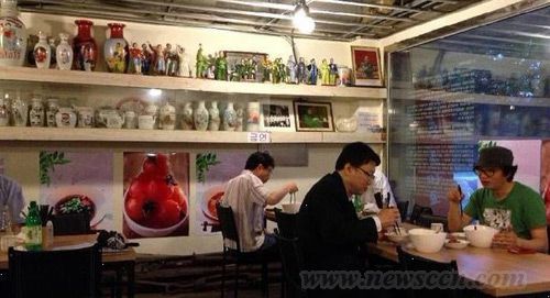 若不是一位韩国记者朋友引领,我还真找不到这家离新华社首尔分社不远的中餐厅。这家中餐厅的名字很特别,叫“博物馆食堂——腕章”,韩语、日语中的“腕章”就是我们通常说的“袖标”。在中国的街道里,现在还不时可以看到带“红袖标”或“红胳膊箍”的大妈。 老板娘叫张惠善,看上去年龄不是很大,很喜欢中国。1992年中韩建交前,张惠善就从香港等地收集中国文化符号的物件,尤其是毛泽东时代的,餐厅内到处张贴或摆放着她的“收藏品”。 张惠善对中国的西部情有独钟,那里绝美的自然风光和淳朴的民风让在首尔长大的她很迷恋,她去过很多次。她的中餐厅的招牌面——“西红柿面”,就是她在中国西部品尝过并留下深刻印象的一种汤面。当然,这家餐馆其他具有中国北方特色的菜肴也非常可口。 老板娘告诉记者,两年前,她本想开个中国特定时期专题的“博物馆”,担心“博物馆”没有收益难以为继,就开了“博物馆食堂——腕章”。
